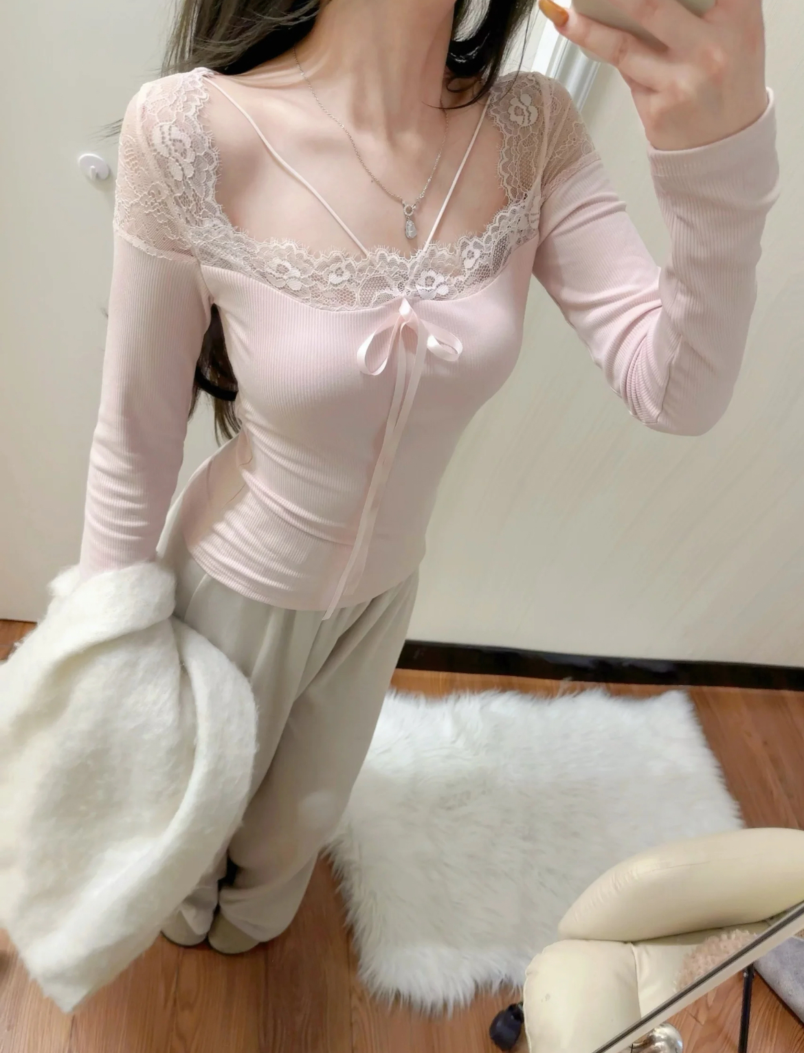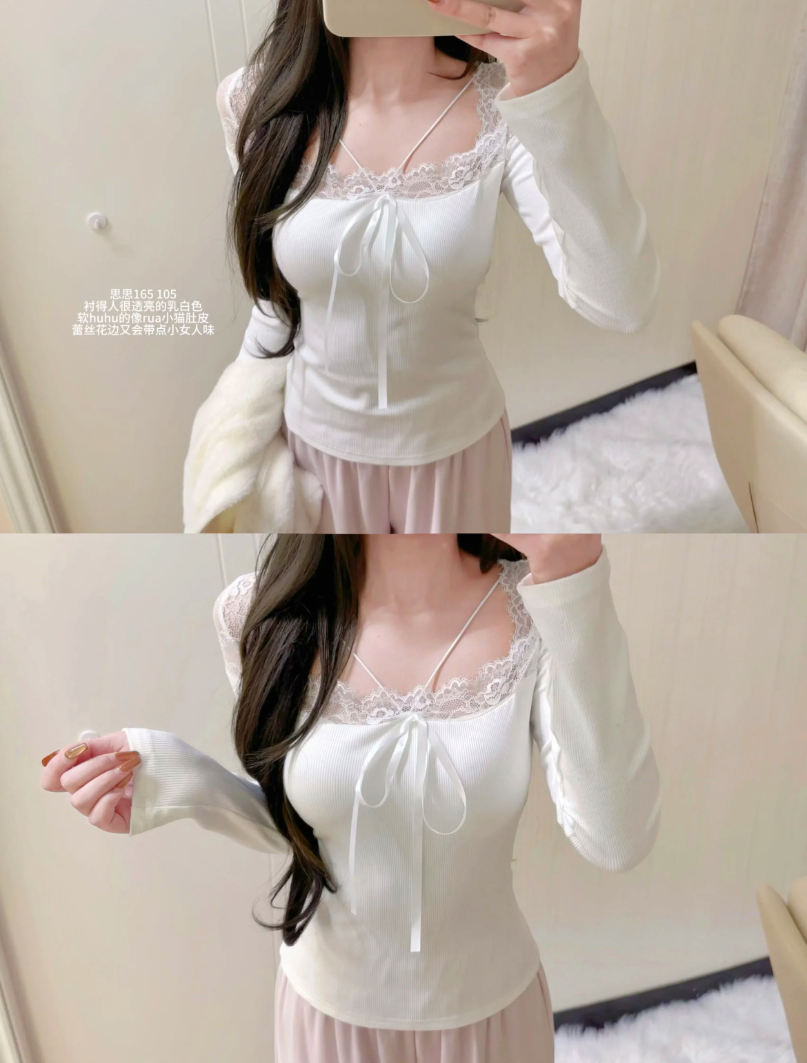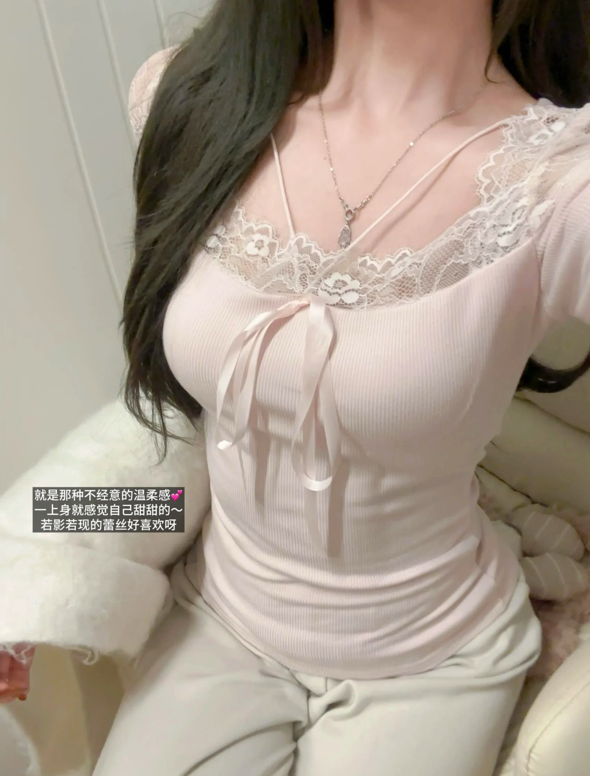 細緻蕾絲+小蝴蝶結綁帶,柔柔的純慾感直接溢出來💗