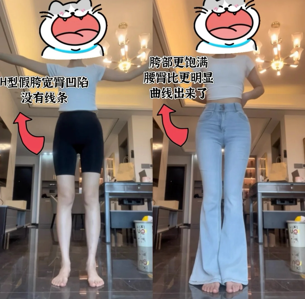 ⚠️白色喇叭褲會透出口袋部分的痕跡,介意的美女慎拍!⚠️
